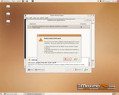 Esta no es tarea nuestra, el Ubuntu busca el Codec específico para el archivo que queremos reproducir y nos muestra lo que ha encontrado, en este caso es el paquete "Gstreamer para audio" y nos avisa que es un Codec con Copyright.