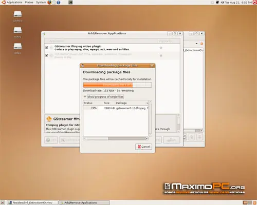 Ya tenemos el Audio pero ahora el Totem nos dice que es necesario el Gstreamer ffmpeg para Video que es el que permite reproducir todas las variantes de DivX, MPEG4 ASF y AVC (H264) y MPEG.