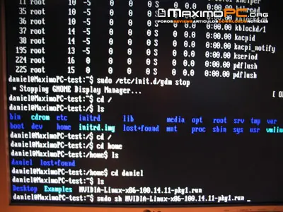 Ubuntu incorpora un control de usuario mediante el comando sudo, esto le permite ejecutar con permisos de "root" cualquier comando, esto es similar al UAC, sin embargo, aquí no hay cartel que impida la ejecución de un archivo, aquí deberemos ser nosotros los que antepongamos el comando "sudo" a la sentencia que deseamos ejecutar, con el sencilo comando de "gdm stop" cortamos el entorno gráfico, necesario para instalar los drivers.