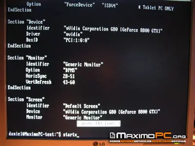 Como en el cabo de todo este tiempo he aprendido algunas cosas de Linux, yo modifico el archivo de manera manual, la ventaja en Linux es que podremos hacer todo esto manualmente si aprendemos y podremos modificar el sistema a nuestro total gusto. Para reiniciar el entorno gráfico podremos escribir StartX o bien reiniciar la PC con Control-Alt-Del, aunque reiniciar la PC no es necesario en absoluto.