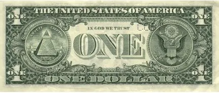 En el billete de un dólar que es usado hoy en día aparece el "ojo que todo lo ve", que hace referencia al "Ojo de Horus", no es un símbolo cristiano, en ninguna parte se menciona en la Biblia, cobró importancia a partir del Renacimiento, y que tiene su origen en el antiguo Egipto, ya "Horus" representa el dios Sol. La iconografía presente en el billete introduce el Ojo en un una Pirámide egipcia con 13 escalones (origen masónico y cultos de Grecia) y que va acompañado de la sentencia "Annuit Cœptis" (1774-76 imprimido en el Louvre y en el Museo Británico-Símbolo de la orden secreta de los Iluminatis, támbien esa fecha representa el año que esta sociedad comenzó sus operaciones, conocida como la Facción Columbia, esta llego a Estados Unidos cuando se formó el primero gobierno de USA, por eso Washington DC esta en el estado de Columbia, támbien unas de las primeras Universidades de USA se llama Columbia, en el ámbito de los medios esta la Columbia Movies, Columbia Records, Columbia TV o más conocida por CBS).