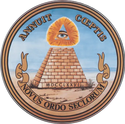 Un ejemplo de esa presencia lo encontramos en un hecho histórico: el presidente estadounidense F.D. Roosevelt, miembro de los Shriners, ordenó que apareciesen en el dólar estadounidense la pirámide truncada con el triángulo y el ojo "que todo lo ve" en la parte superior (símbolo de Los Illuminati de Weishaupt), los trece escalones de la pirámide (13 grados del Rito de los Iluminados de Baviera), las inscripciones en latín Annuit Coeptis y Novus Ordo Seculorum, la fecha 1776 (fecha de la fundación de Los Illuminati de Baviera). El sello de la pirámide, para muchos, coronó una muy larga tradición iluminista en los EE.UU.