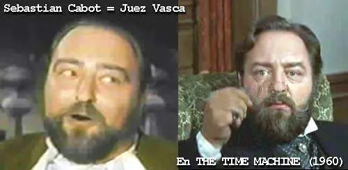 En el noveno episodio de la serie, A FAIR TRIAL (El Juez Vargas-1959), aparece un colorido personaje: el juez Vasca (Sebastian Cabot), un emisario del gobernador que es enviado para juzgar a Don Alejandro y a Don Nacho, ambos encarcelados por Monastario, quien envía al simpático Sargento García a San Fernando, para retrasar la llegada del juez. García no tiene otro modo de distraer a Vasca que invitándolo a una posada a comer y beber hasta no dar más. Cabot estaría implicado en un viaje, no tanto espacial sino temporal. Nos referimos a THE TIME MACHINE (La Máquina del Tiempo-1960), una fantasía victoriana llevada a la pantalla por George Pal. En esa oportunidad, Cabot encarnó al Dr. Hillyer, uno de los amigos del protagonista - y único viajero de la película- (Rod Taylor).