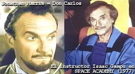Por último, en ZORRO AND THE MOUNTAIN MAN (1959) llega al pueblo un montañés (Jeff York) cuyos rudos modales le provocan enseguida una gresca con el hacendado Don Carlos Fernández, quien es golpeado por el bruto. En el papel de Don Carlos tenemos al gran Jonathan Harris, de quien diremos que, muchos años después, se convirtió en el instructor más querido por los chicos de la serie SPACE ACADEMY (1977). Ah... aquí tenemos un pequeño e interesante detalle... y sepan que dejamos para el final otro rol importante de Jonathan Harris, como fue el del Dr. Zachary Smith, un personaje de la serie LOST IN SPACE (Perdidos en el Espacio-1965-1968). Smith era agente de una potencia enemiga, que logró escabullirse en la nave Jupiter II, tripulada por la familia Robinson, quienes fueran lanzados en 1997 rumbo a un planeta ubicado en Alfa Centauro con propósitos de exploración y colonización. Pero Smith sabotea la nave y el grupo cae en un planeta extraño, quedando varados en ese lugar y viviendo las más cómicas aventuras. ¿Y a quién tenemos como jefe de la familia Robinson? Ni más ni menos que al propio Guy Williams, varios años después de haber sido el Zorro.