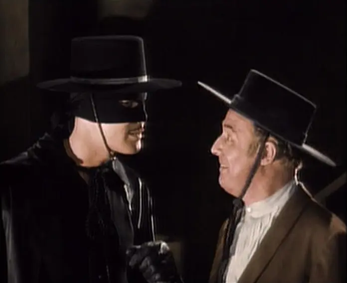 A este pueblo es al que llega don Diego de la Vega (Guy Williams), el “joven” hijo de don Alejandro de la Vega, que había pasado los últimos años estudiando en una universidad de España. Allí había conocido a Bernardo, un hombre calvo y mudo quien se había puesto a sus servicios. Para aparentar que ahora era un hombre nuevo, don Diego les hizo creer a todos que a él ahora lo que más le interesaba en el mundo era un buen libro, que no se metía en política ni buscaba líos con nadie; que ni siquiera sabia manejar bien la espada (que en aquella época era un requisito esencial de defensa). En cuanto a Bernardo, se hizo pasar por sordomudo, lo cual no fue muy difícil ya que era mudo para empezar, y se había entrenado para no reaccionar violentamente a los sonidos repentinos (como un disparo).