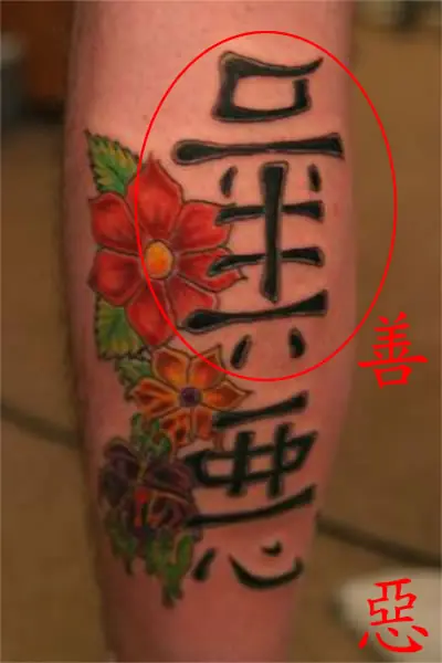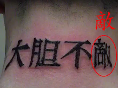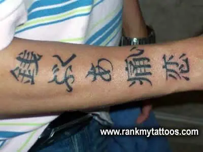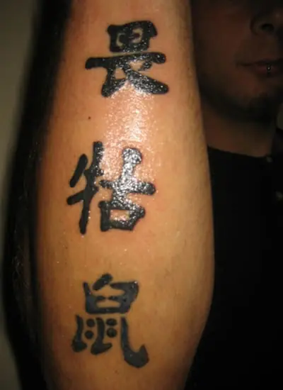 A menos que tengas un familiar, amigo,conocido que sea chino o japones, no te tatues letras orientales, ya que la mayoria de las veces estos caracteres estan mal escritos.