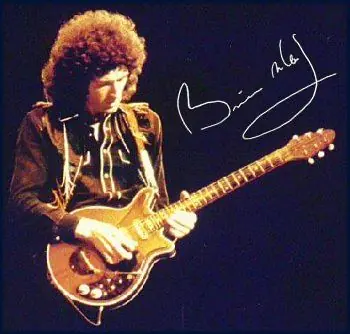 Brian continuó buscando el sonido que el perseguía para su guitarra. Tras muchos experimentos, descubrio que tocando con una moneda de seis peniques como púa, conseguia un sonido puro y limpio. Y usando esa moneda es como ha tocado Brian en todos los discos y en todos los conciertos de Queen.