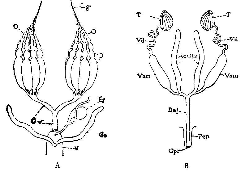 Lo que podría haberse convertido en conductos seminales en los machos, se convierten en paraovarios en las hembras, un grupo de tubos que acaban en vía muerta próximos a los ovarios.