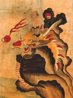 El uso del símbolo del dragón ha sido utilizado incansablemente dentro de la mitología y arte coreano. Políticamente, el dragón representa al Emperador, quien también se asociaba con el agua y la agricultura. Aquellos señores feudales debajo del poder del Emperador, se les prohibía utilizar la imagen de los dragones, y solo podían utilizar la idel fénix, como muestra de su rango jerarquico.