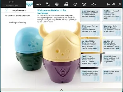 * Moblin es un entorno de escritorio diseñados especialmente para netbooks y MIDs. Minimiza el tiempo de arranque y el consumo de energía.