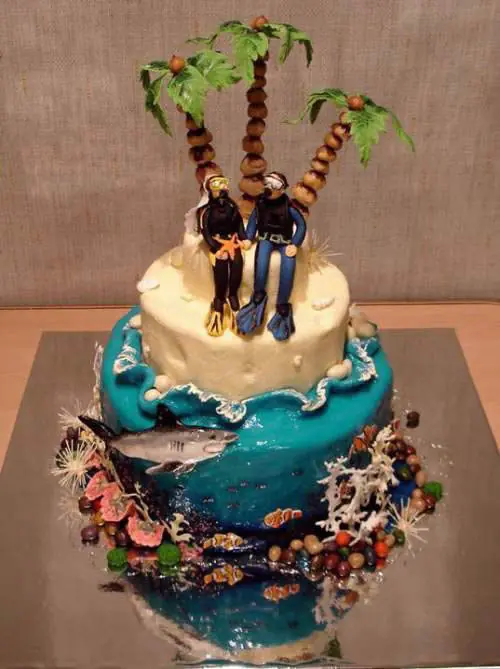 6) Me parece que los novios son amantes del buceo. Ese pastel es una obra de arte…, ¿no crees?