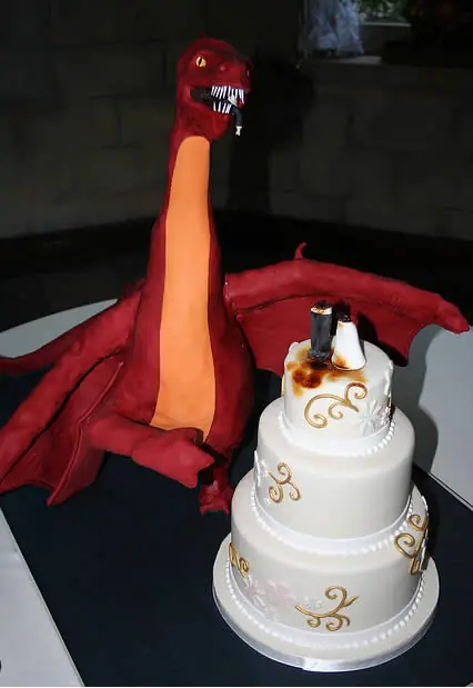 7) Oops! Y la cabeza de los novios, ¡un gran dragón se los ha comido! Creo que a esos novios les apasionan los dragones.
