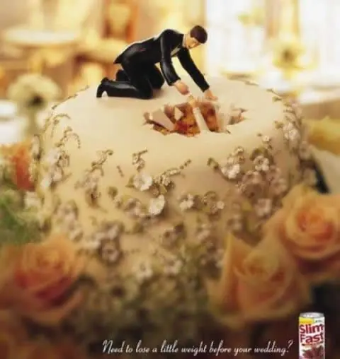 9) ¡Vaya! Creo que la novia estaba un poquito pasada de peso… y abajo vemos el anuncio de Slim Fast, para bajar de peso.