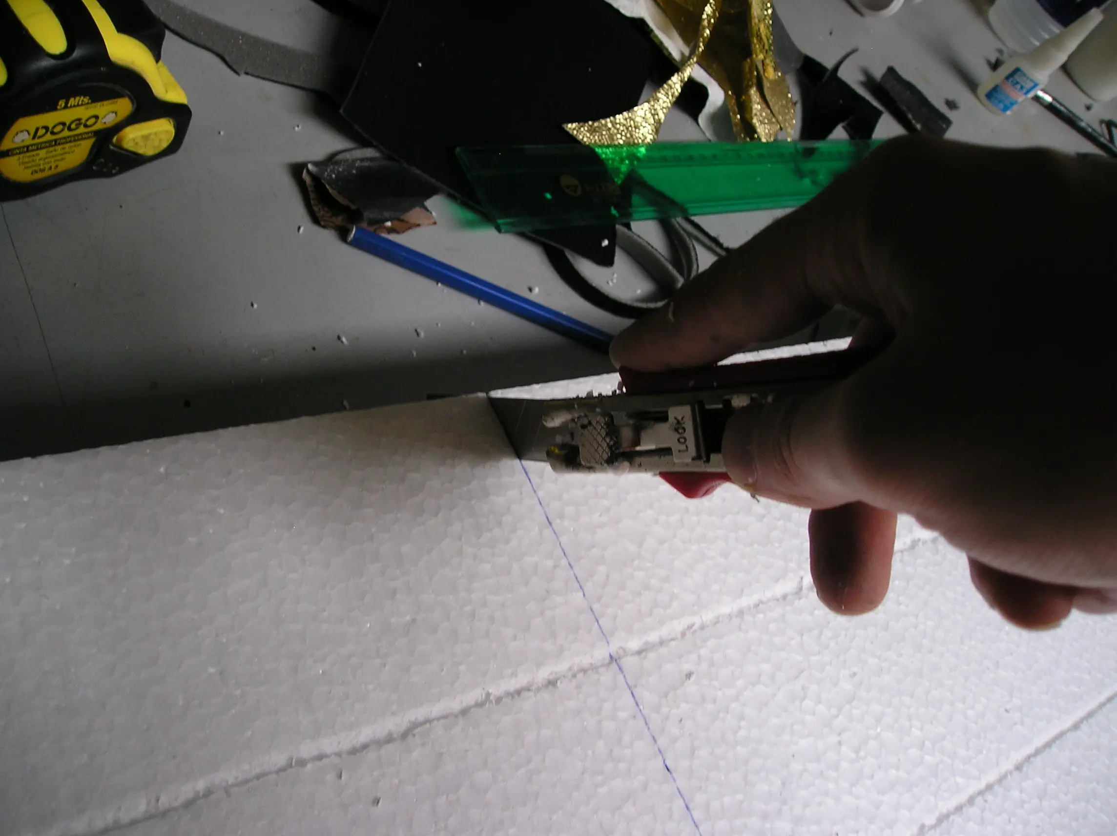 Una vez que tenemos las medidas, cortarlo es muy sencillo. Hay que pasar el CUTER al estilo serrucho.