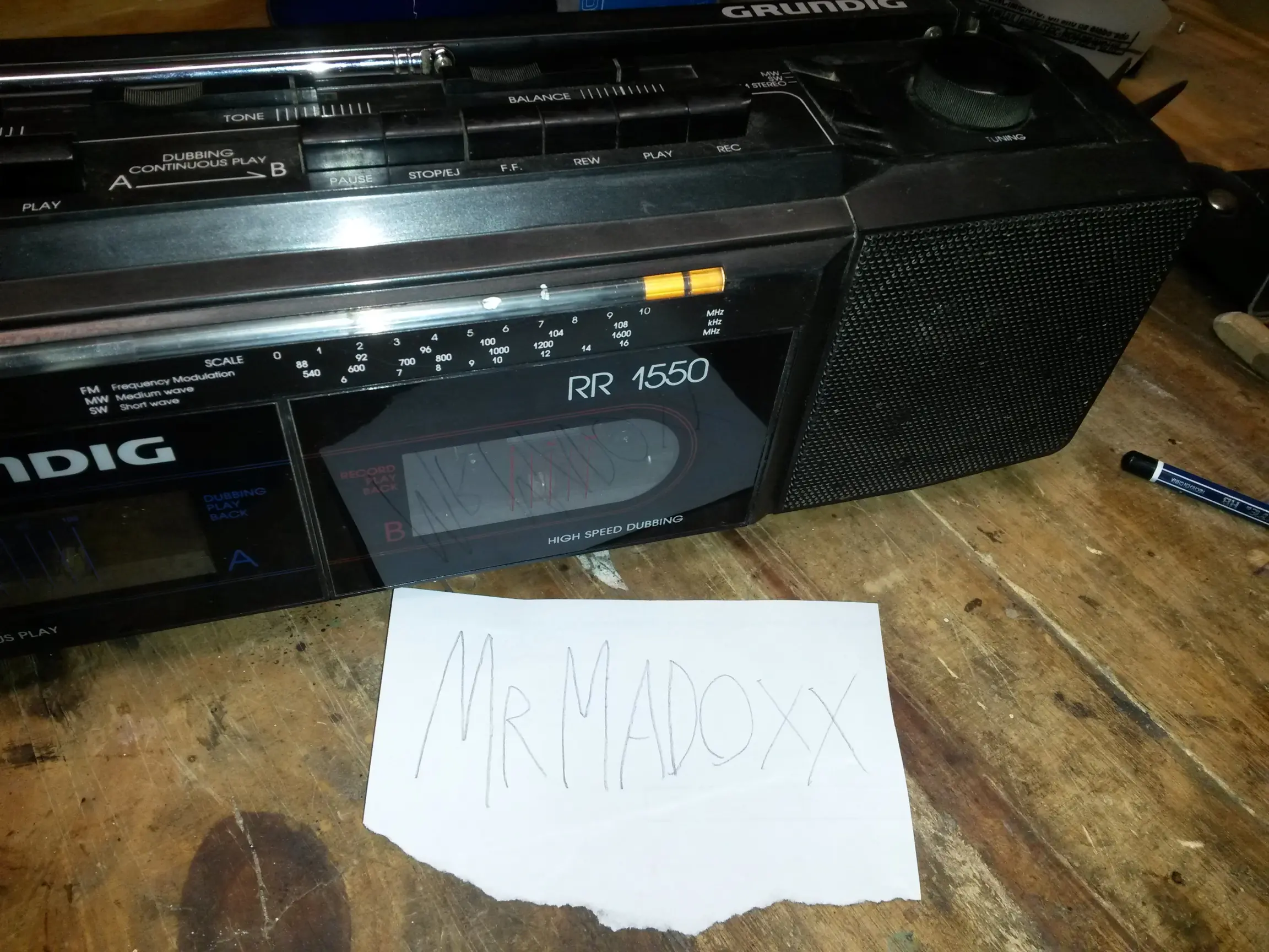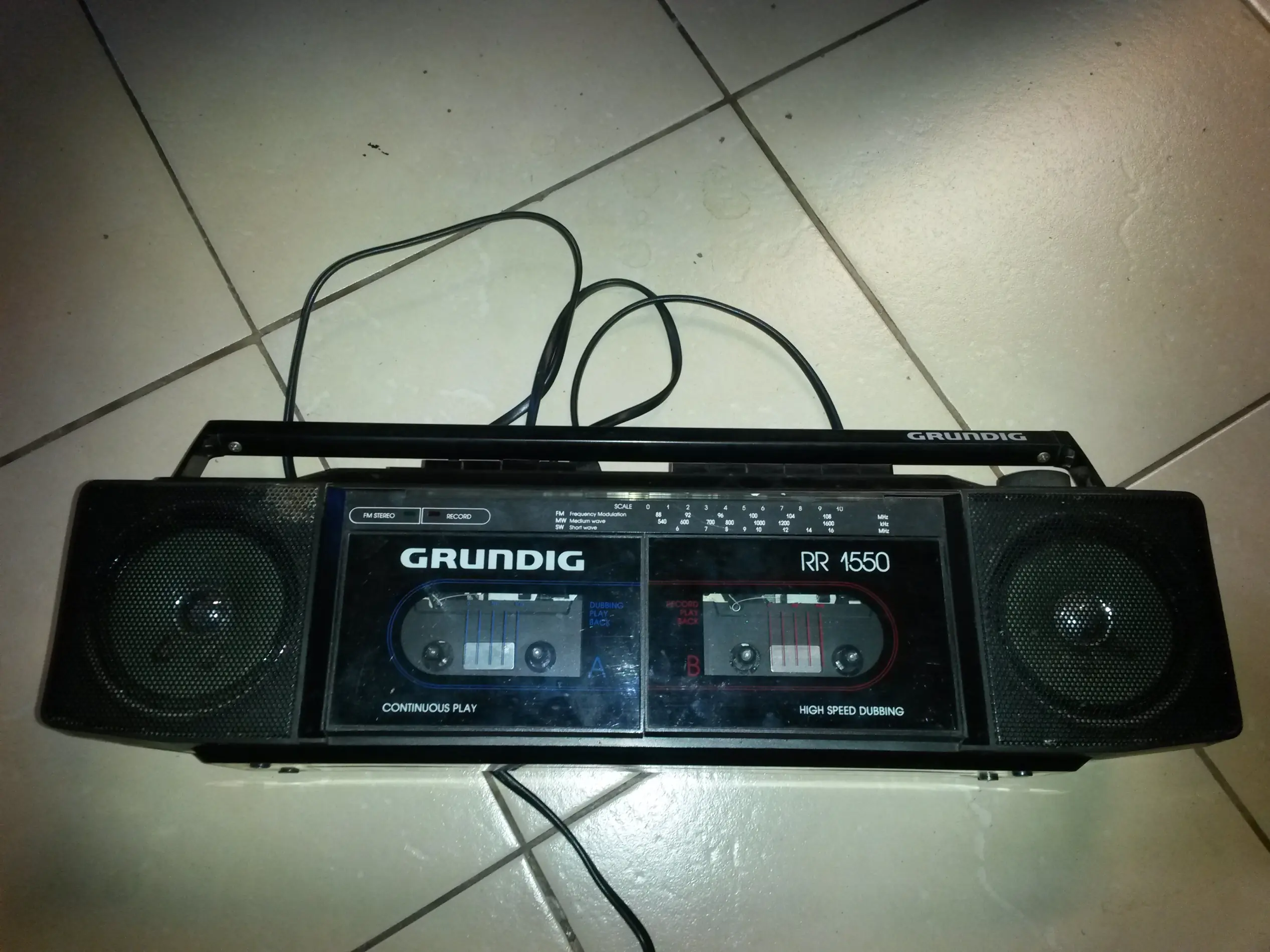 En mi caso yo tenía una radio Grunding RR 1550 que me regalaron, al verla a simple vista dije otra radio vieja que va a ocupar más espacio que el uso que le voy a dar (casset no tengo ninguno y radio soy de escuchar poco) pero al encenderla y sintonizar una FM local y escuchar la calidad de sonido relativamente de “calidad” sin ser el clásico ruido a tachito se me ocurrió que la podría modificar y usarla para pasar música con el celular o tablet.