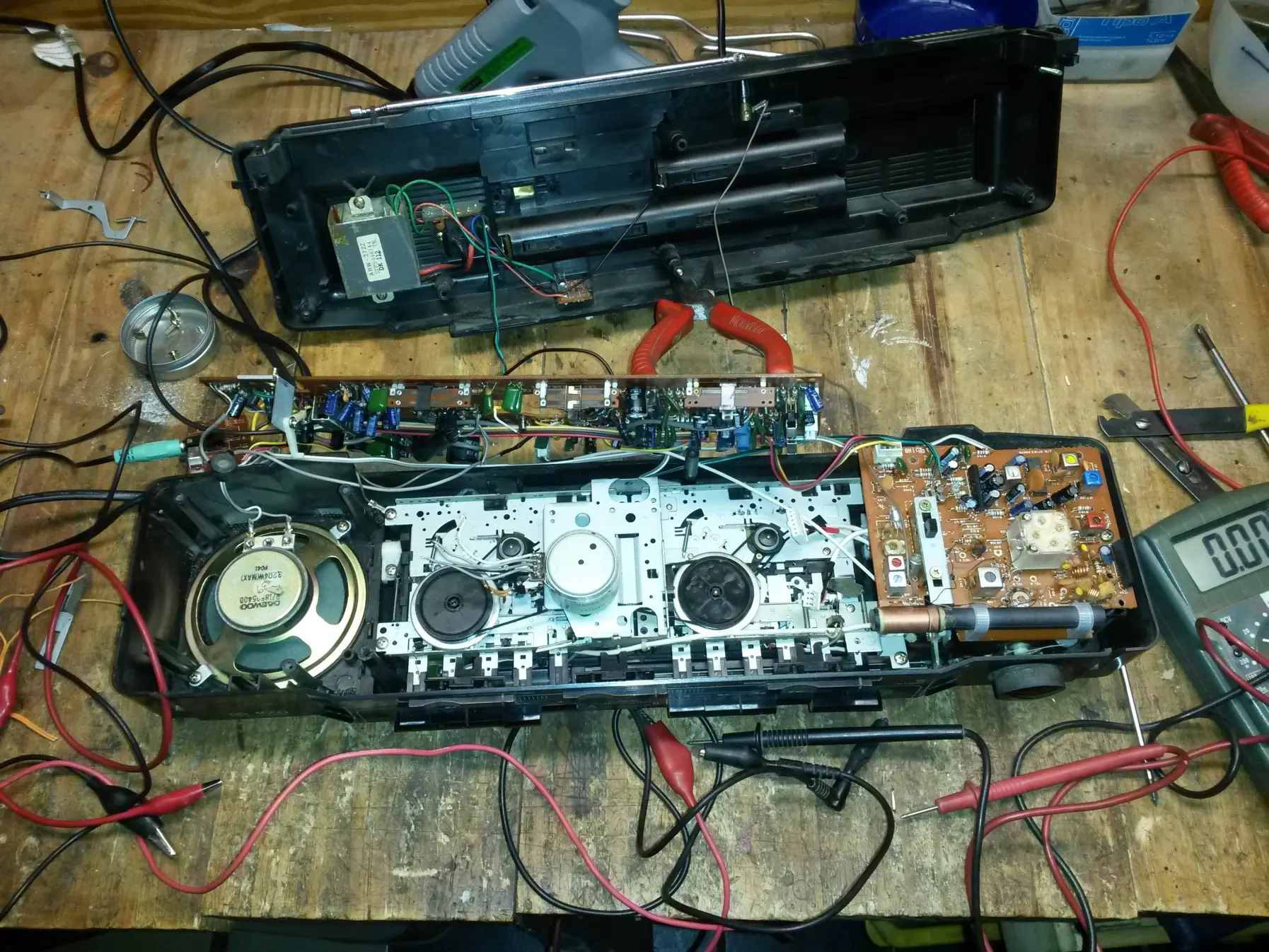 7-Probar con un dispositivo si suena correctamente. Si lo decean con los alicates cortan los cables que serían los lectores de los casset y el motor para disminuir ruido. Ojo que si no les funciona después de esto es porque tienen que puentear en la placa donde estaban soldados los cables de los lectores.