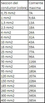 y con esos valores ir a la tabla 1 y sacar la sección de cable que necesitamos.