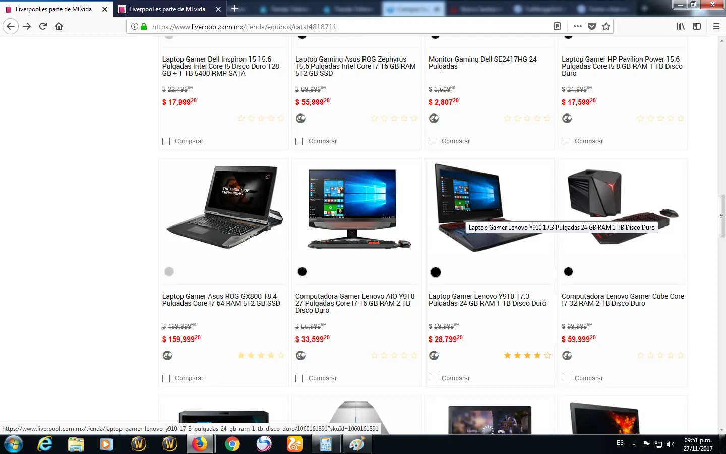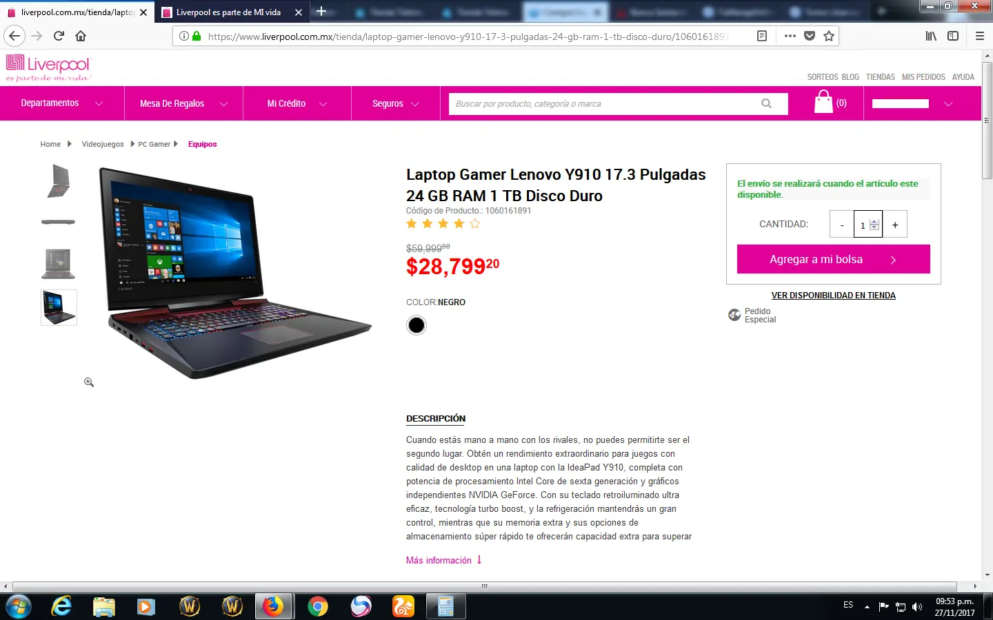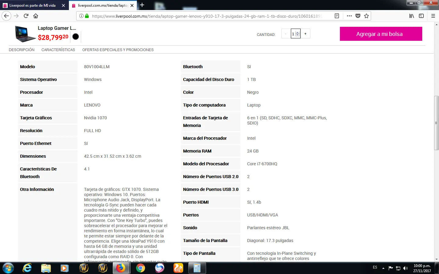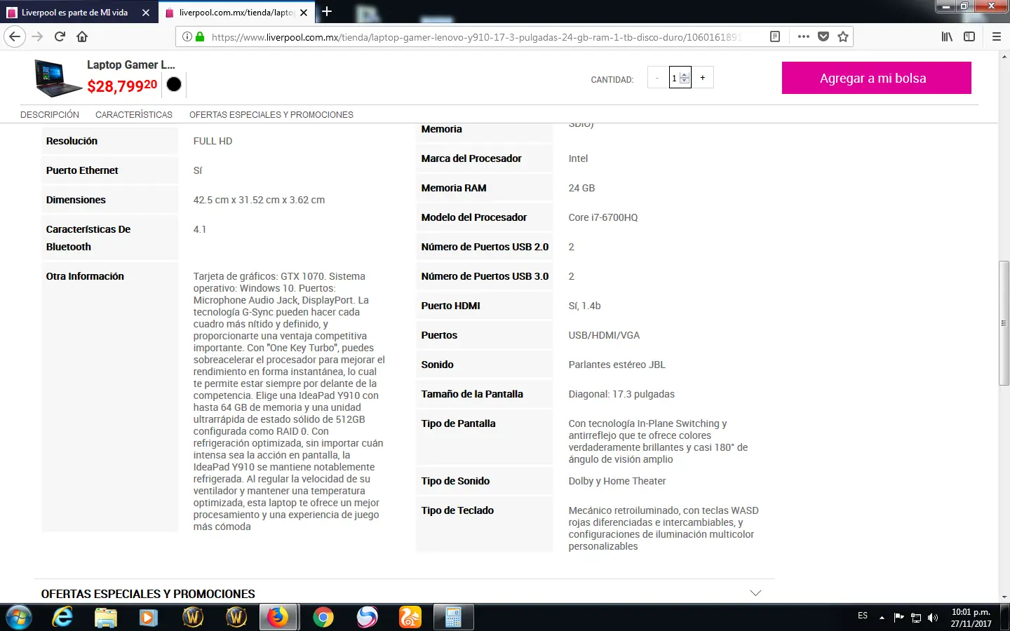 *despues cai en la pagina de una tienda departamental y vi una oferta que me llamo la atencion