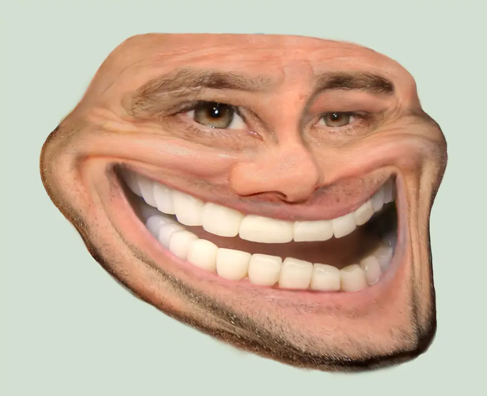 A veces también llamado erróneamente Cool Face, es probablemente la más famosa de estas caras. Su origen se remonta a un dibujo simple de Paint en el que hay dos ejemplos de Trolls. En uno, dos personas están discutiendo en un foro como 4chan, y una de ellas escribe algo ilógico, haciendo enojar al otro. En el otro ejemplo, el Troll intenta hacer lo mismo, pero la persona no se enoja, siendo el Troll el que resulta frustrado al no conseguir el fastidio ajeno. Éste suceso cobró tanta fama por Deviantart, YouTube y otras webs, que se ha convertido en una de estas famosas faces (caras) muy usadas en cómics de Internet, y que constituyen un gran fenómeno (Meme) del que nadie se olvida. Las características del "Troll Face" describen a una persona con la misma cara, que normalmente tienen como objetivo/función fastidiar a los demás, explicar hechos con los que ellos "quedan bien" (a lo que ponen esa cara), o incluso falsos tutoriales de conseguir dinero infinito (obviamente imposibles), bromas pesadas para fastidiar incluso al lector, etc.. Según el autor, lo que intentaba era dibujar algo parecido a Rape Rodent (otro meme de 4chan), el cual a su vez era un intento por dibujar a Super Ratón, una parodia de Superman de los años 40.