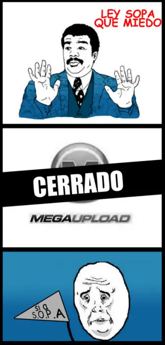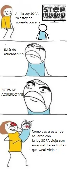 -Hijo yo vivi en un tiempo en el cual el internet era bueno, todos podian poner lo que querian, los Copyrights nos valian madre-Y que paso pa'?-Una **** ley nos ****** la vida, por eso hijo es que se armo la 3ra Guerra Mundial: La guerra Friki le llamaron, pero por mas que fuesemos unos Frikis de los buenos defendimos nuestro honor y poder subir y descargar lo que quisieramos, pero el gobierno nos gano, nos gano maldicion!!!Espero nunca tener que decirle algo asi a mis futuros hijos...
