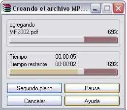 Seguidamente se daría a aceptar y el archivo empezaría a comprimirse. Realmente, una vez seleccionada cualquiera de las opciones, la forma de comprimirse es la misma, y aparece la siguiente ventana, que una vez finalizada la compresión se cerrará automáticamente: