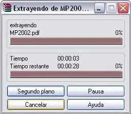 Aquí recomiendo no cambiar la configuración que se nos da, y simplemente nos limitaríamos a mostrar dónde queremos que el archivo o los archivos que tengamos comprimidos se descarguen. Para ello seleccionaremos la carpeta en donde queramos ubicar los archivos producto de la descompresión (podemos crear una carpeta nueva, por ejemplo, y quizá sea lo más conveniente, para que una vez descomprimidos los archivos éstos no se mezclen con otros posibles archivos que nosotros tengamos con anterioridad). Así, una vez localizada la carpeta en donde se descomprimirán los archivos, se daría a aceptar y aparecería una ventana como la siguiente (que es la ventana que aparecerá en toda descompresión también):