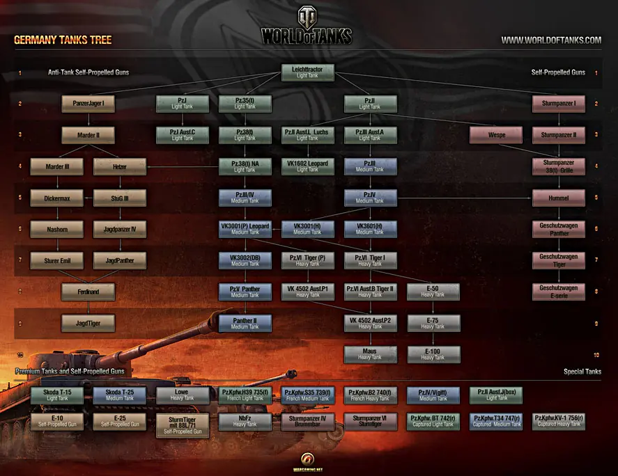 Tienen su propia rama dentro del juego, combinan una mezcla de todo, blindaje, velocidad y poder de fuego. Podriamos decir que son los mas equilibrados.Tiene un poco de todo pero logicamente ni son los mas blindados, ni los mas letales ni los mas rapidos...
