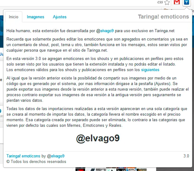Hola esta extensión fue desarrollada por mi ( @elvago9 ) para uso exclusivo en Taringa.net