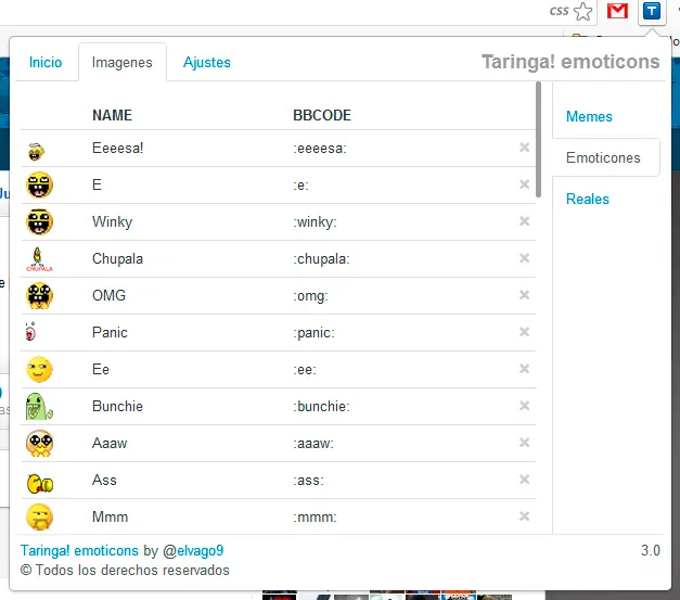 En esta versión 3.0 se agregan emoticones en los shouts y en publicaciones en perfiles pero estos solo seran visto por los usuarios que tienen la extensión instalada y no podrás editar el listado.