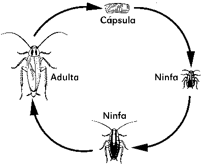 Figura 2-2. El ciclo de vida de la cucaracha alemana,