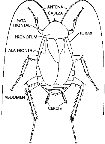 Figura 2-3. Las estructuras del cuerpo de una cucaracha. (USDA)