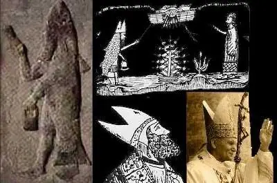 El gorro del papa tiene forma de pez como el usado por los sacerdotes de mesopotamia, los sacerdotes eran la conexión entre en pueblo y los dioses annunaki ... o lo siguen siendo?