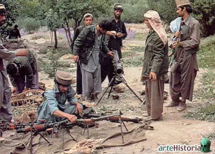 Los rebeldes forman alianzas y se unen en sub-grupos unidos por pertenecer a una etnia o contexto comunes. Además, tanto China como Estados Unidos los apoyan enviándoles grandes cantidades de armamento a través de Pakistán. EE. UU. proporciona soporte a los rebeldes de forma clandestina. Al inicio de la guerra proporcionan material obsoleto de la Primera Guerra Mundial, e incluso más antiguo, a fin de que sea imposible relacionar el material entregado con los EEUU. Más adelante acaba proporcionando material bastante más avanzado como misiles franceses antitanque guiados y morteros de 120 mm que servirán para bombardear los campamentos soviéticos en la zona.