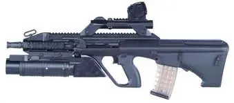Steyr AUG 9 mm.Steyr AUG M203: Un AUG modificado para usar con el Lanzagranadas M203