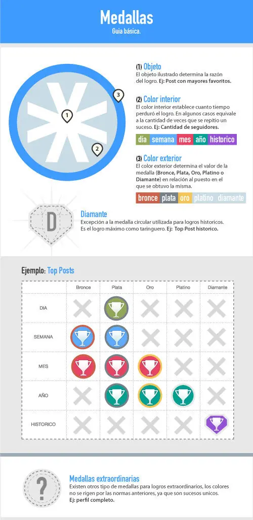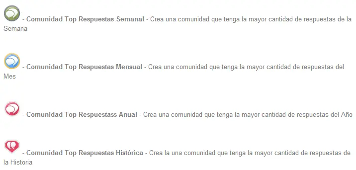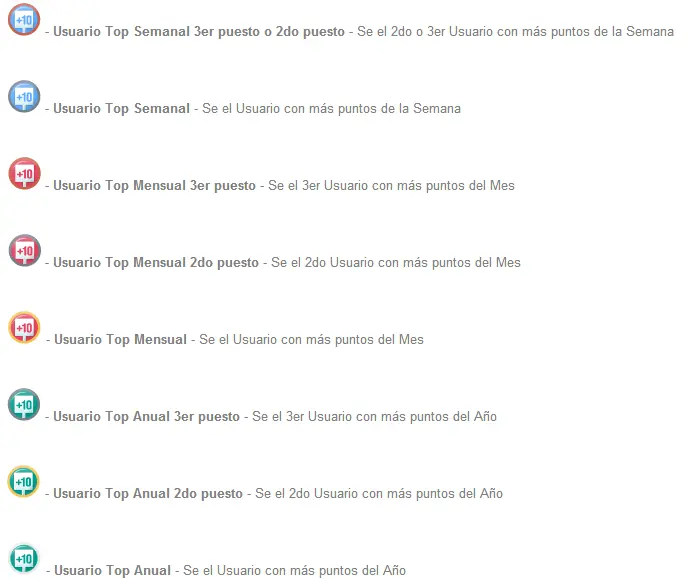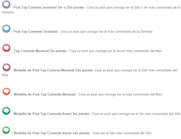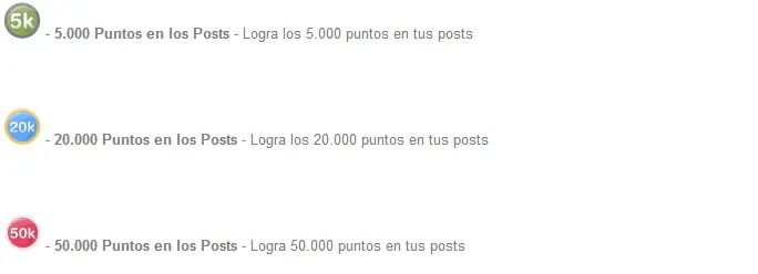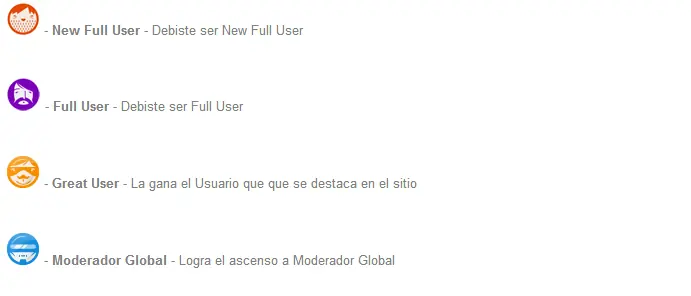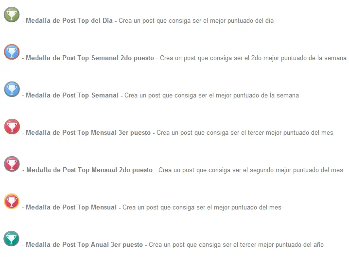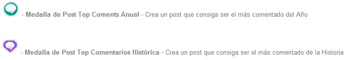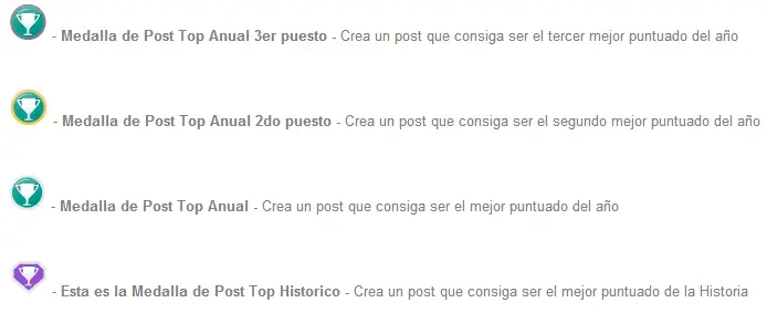 Las medallas son una forma de premiar al usuario por su participación en la web que va más allá de los puntos recibidos por sus post, se entregan en forma automática a los usuarios que cumplen ciertos objetivos.