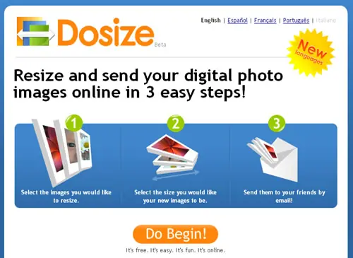 13. Dosize : La misma función para redimensionar una imagen, pero con una diseño mucho mejor, mas rápido y con un adicional muy bueno. Permite adaptar el tamaño de varias imágenes a la vez sin ningún problema, de esta forma podemos subir en simultaneo varias imágenes y redimensionarlas como si se tratasen de una sola. También esta en español.