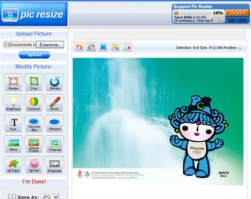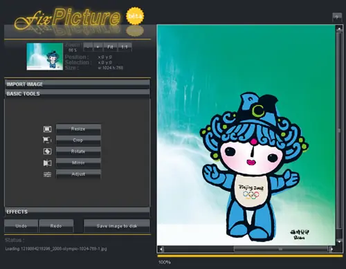 7. Fix Picture : Esta opción es bien básica, aclaro que puede resultar algo confuso su utilización, por ejemplo cuando cargamos una imagen la barra que muestra el progreso esta oculta en la parte inferior del sitio. Sacando esos detalles es una buena alternativa con efectos y opciones básicas para tratar las imágenes.