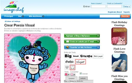 2. Image chef : No es un editor de fotos online propiamente dicho, no obstante, permite encuadrar nuestras fotos incluyendo divertidos marcos, tiene opciones como el de recortar una foto ni bien la terminamos de subir, también cuenta con un componente social que nos permite compartir nuestros trabajos con el resto de la comunidad