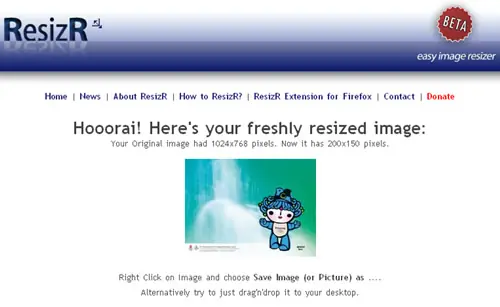 12. ResizR : Otro editor que solo permite redimensionar nuestras imágenes online, pero a diferencia del que comente antes este solo requiere colocar el ancho de la imagen, de esa forma mantenemos las proporciones sin deformar la imagen. Además cuenta con una extensión para Firefox para realizar este trabajo.
