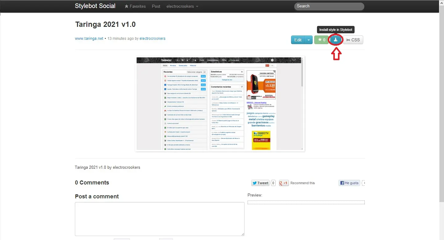 2) Vamos a Stylebot Social [Click aquí] y le damos a Instalar