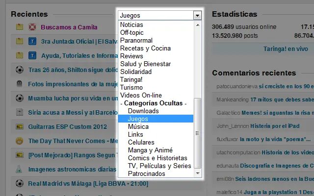 Permite poder filtrar las categorías ocultas tanto en el inicio como en los TOP Post.
