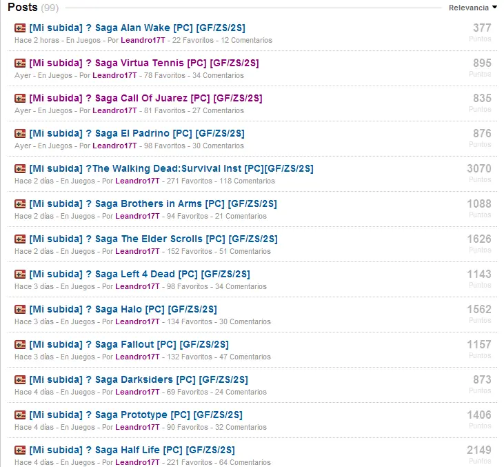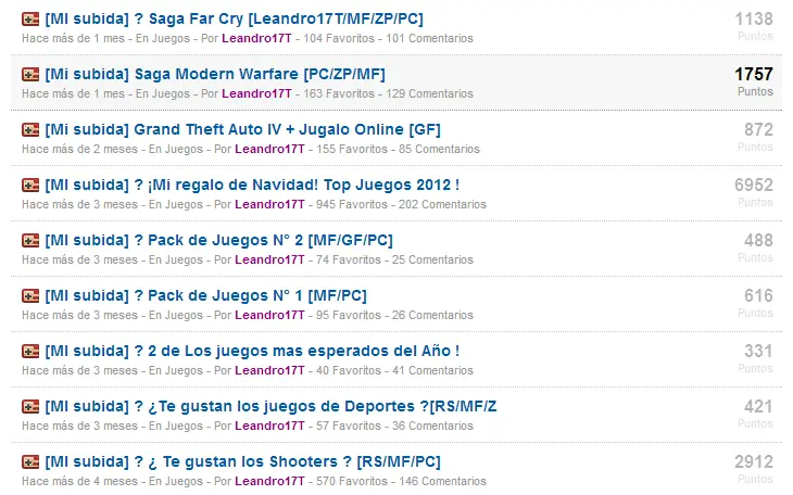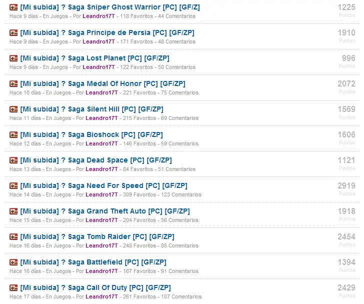 @Leandro17T . Y no, no es por "Sobamedias", y si así lo fuese, bien merecido, este tipo es el uploader de Videojuegos más grande del sitio entero. Véanlo ustedes mismo :