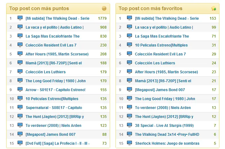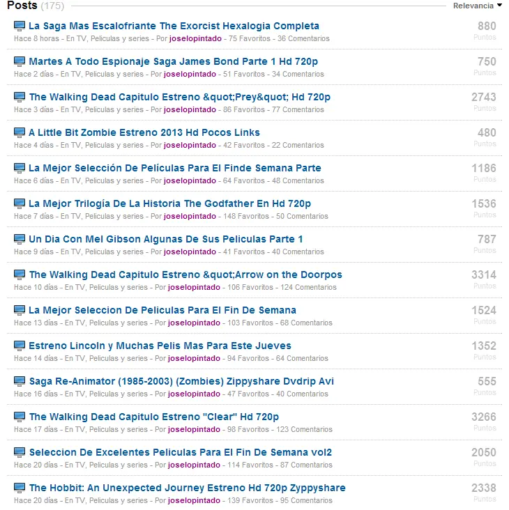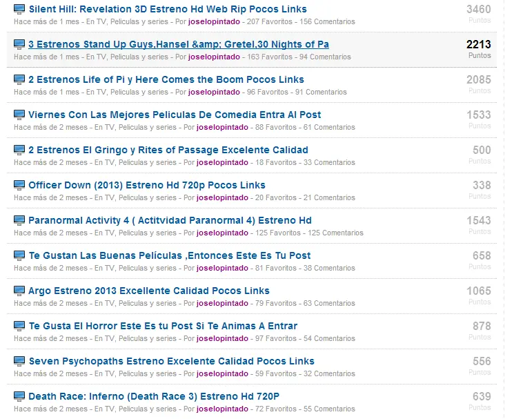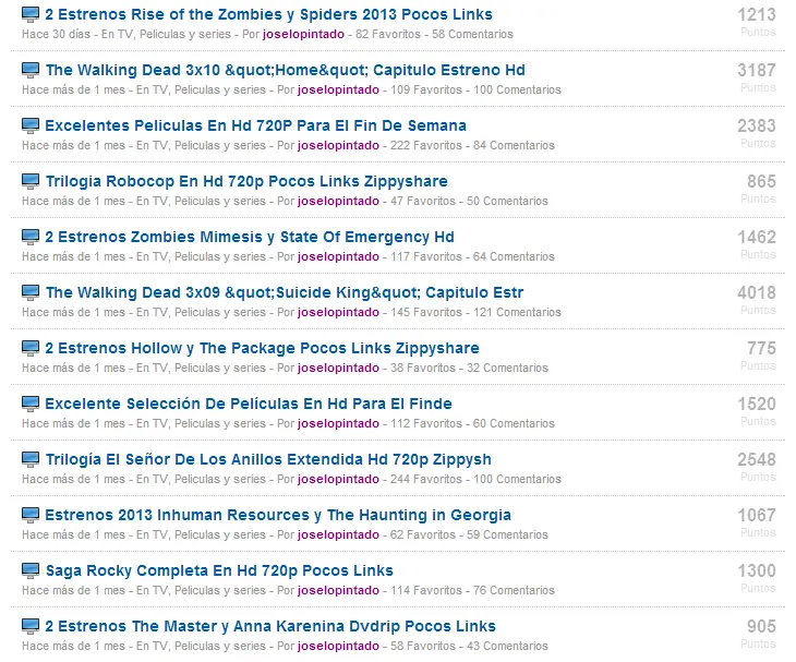 @joselopintado TOP usuario durante mucho tiempo. Uploader de más de 150 peliculas, la mayoría en HD.