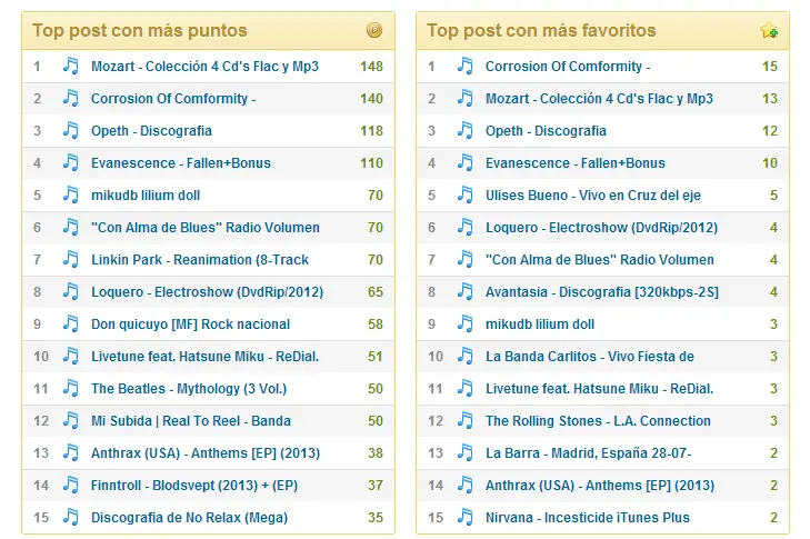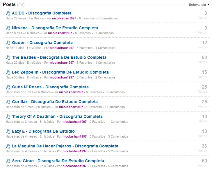 @nicolashan1997 Sube las discografías completas de las mejores bandas de música. Imperdible!