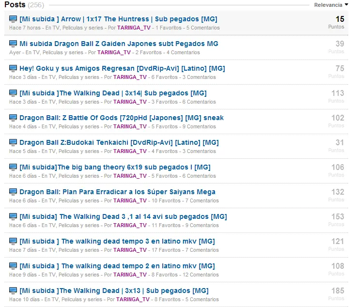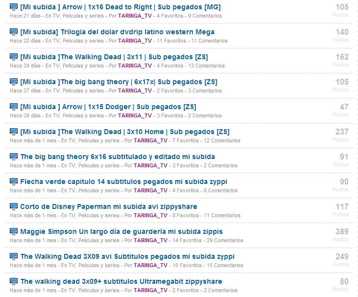 @TARINGA_TV Comparte con la comunidad series, películas y muchos más, las subtitula y sube él mismo. Más de 250 post sobre este rubro.