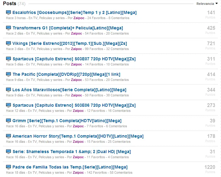 @Zaipoc (Como las bolsitas "Ziploc" pero con una "a" ) Uploader de peliculas y las series más famosas de todas con temporadas completas