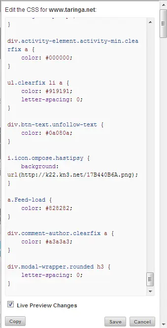 3) Apretamos el botón 'Edit CSS' y pegamos esto: