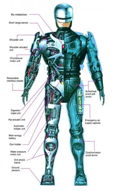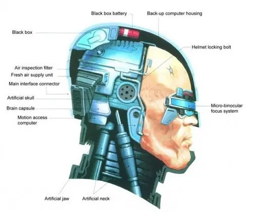 14. La figura del personaje ha sido estudiada y copiada como fuente de otros muchos cyborgs. Estas dos ilustraciones nos muestran la anatomía de RoboCop tal y como lo concibieron en la OCP: