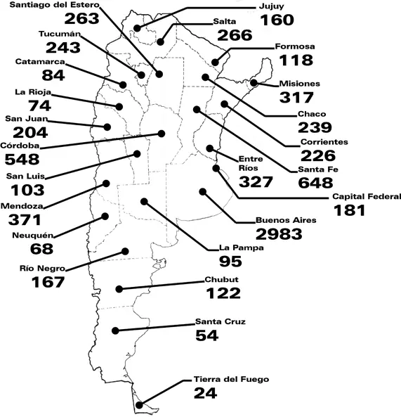 La provincia de Buenos Aires fue el distrito con mayor número de víctimas mortales ese año, con 2.856 decesos, mientras Santa Fe registró 653 y Córdoba 541.