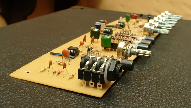Primero descarga El archivo PDF con los planos del Circuito amplificador de audio, el Circuito impreso y lista de materiales electrónicos de un preamplificador para bajo eléctrico. Este preamplificador esta basado en el gallien krugger 400 RB, y es un aporte de Ricardodeni de el sitio Forosdeelectronica.com con el impreso retocado por nosotros para darle el estilo que caracteriza nuestros PCB.